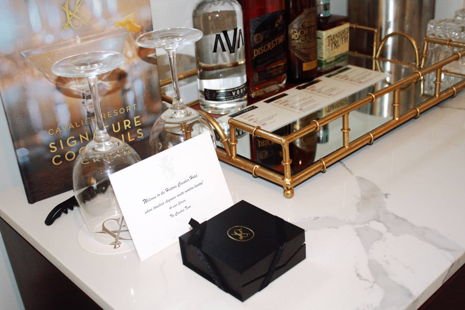$72.00++ | Cavalier Nut Tin, Signature Chocolate Box, 2 Bottled Waters, 2 Gourmet Snack Items, and Postcard (Milk, Peanuts, Tree Nuts, Wheat)